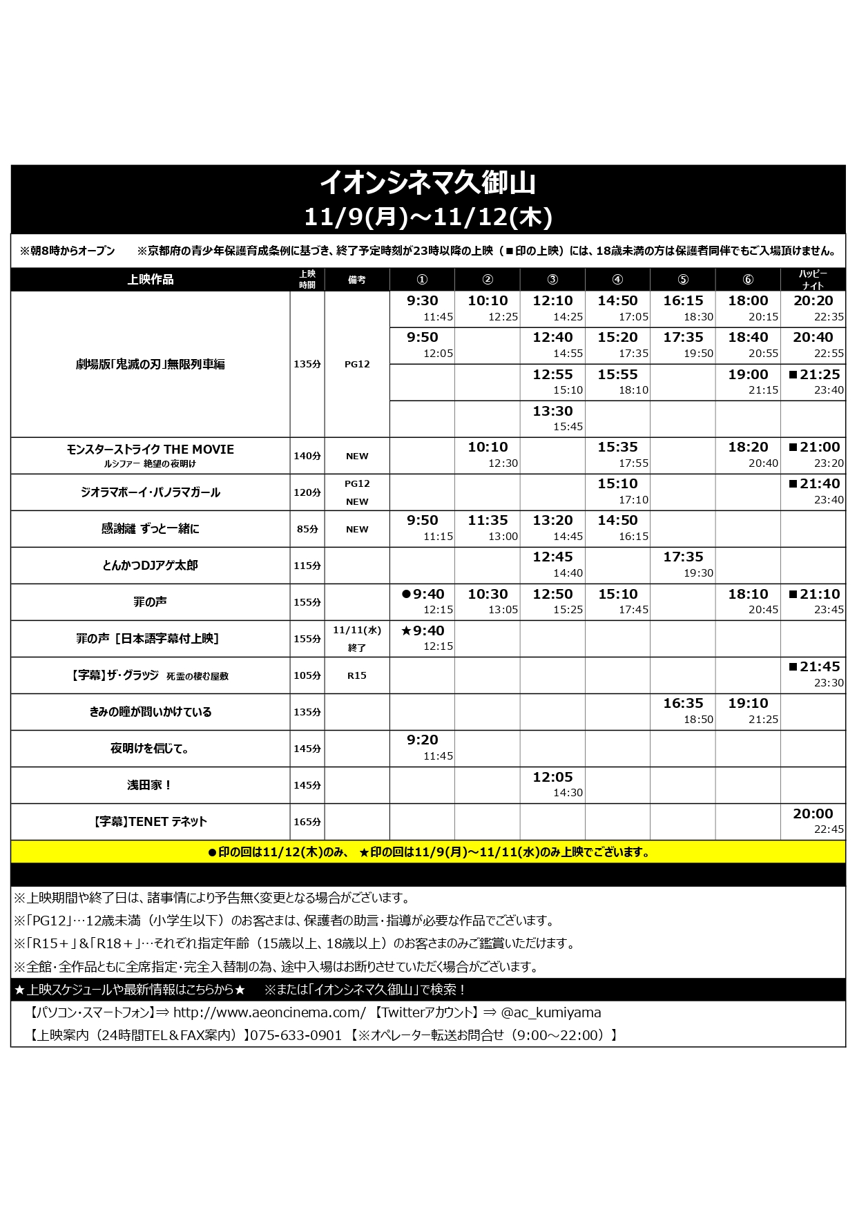 イオンシネマ久御山 ドライブインシアターも開催 11 6 金 11 12 木 の上映スケジュール モンスターストライク The Movie ルシファー絶望の夜明け ジオラマボーイ パノラマガール 感謝離 ずっと一緒に 公開 イオンシネマ 久御山